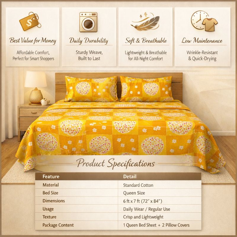 | Package Content | 1 Queen Bed Sheet + 2 Pillow Covers |